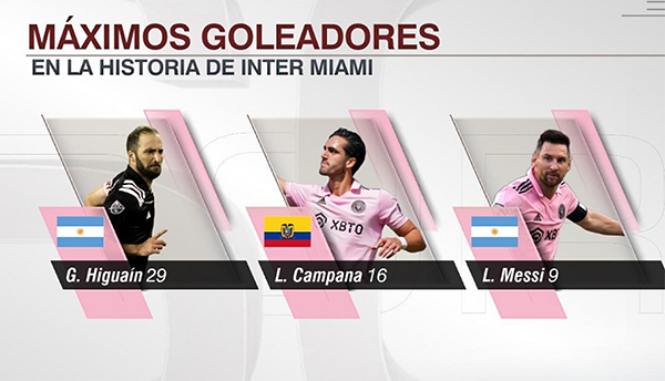 梅西再度取得进球,他也刷爆纪录,梅西加盟到迈阿密国际之后踢了6场比赛,每一场比赛都取得进球,其中包括3场比赛上演梅开二度的好戏,3场比赛均打进1球,6场狂轰9球,这也让梅西升至队史射手榜第三的位置。