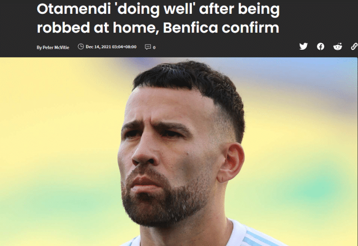 178直播12月14日讯 本菲卡俱乐部证实,球员奥塔门迪昨天在家中被4名歹徒抢劫,并被挡着妻儿的面被歹徒用皮带勒住了脖子。