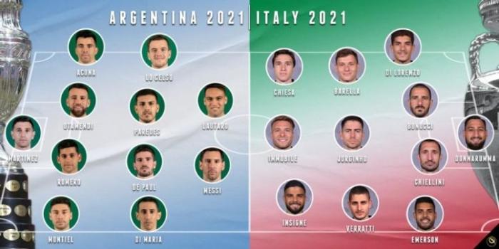 178直播讯 美洲杯和欧洲杯均已落下帷幕,阿根廷和意大利分别夺得冠军,有媒体晒出两队的决赛首发阵容PK,并问:“谁会赢?”