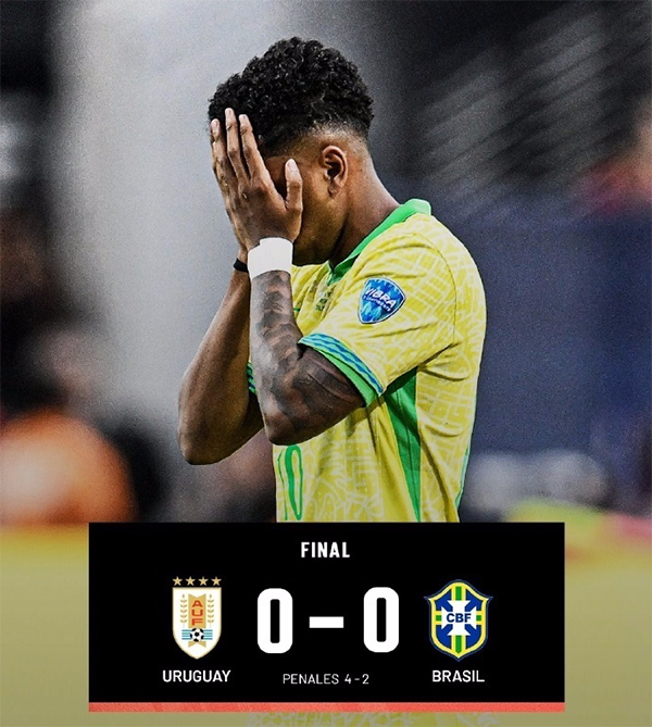 178直播讯 在北京时间7月7日结束的美洲杯最后1场1/4决赛中,“五星”巴西在常规时间90分钟多打1人情况下,0-0被乌拉圭逼平,点球大战中,巴西2-4不敌乌拉圭,遗憾无缘4强。这也是近3届巴西美洲杯的最差战绩,上2届球队分别是冠军和亚军。