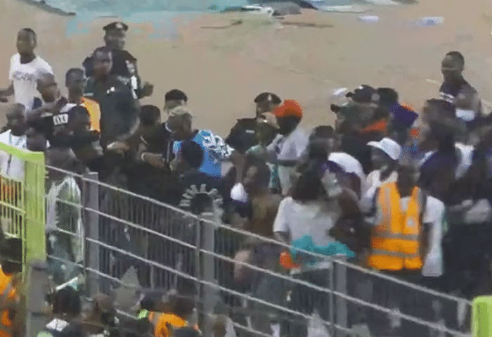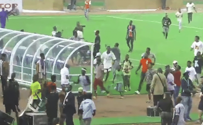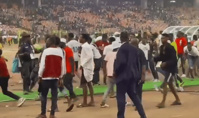 剩下的时间两队都没有取得进球,尼日利亚因为客场进球劣势遭遗憾出局,无缘2022年世界杯,这也是2006年后尼日利亚首次无缘世界杯,比赛以这样的方式结束,对于尼日利亚球迷来说是很难接受的,比赛结束后,大量的球迷情绪失控冲进场内,场面一度十分的混乱,他们怒砸球场,将场内的设施拆掉,有的球迷发飙追打尼日利亚男足球员。有网友调侃道:一群球盲。