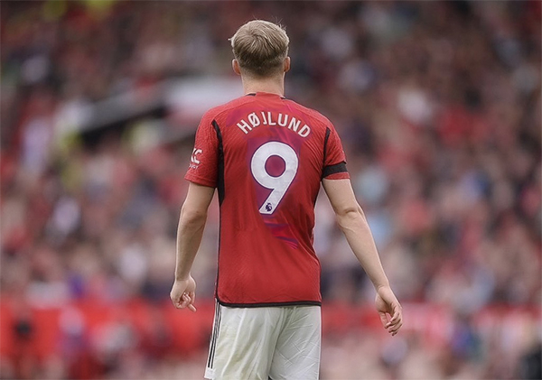 霍伊伦德目前身披曼联11号战袍,这是一个边锋的号码。而他对9号球衣并不陌生,在效力奥地利格拉茨风暴时,丹麦前锋就身披9号球衣,而在母队哥本哈根的青年队,他也是9号的当然人选。效力丹麦队期间,霍伊伦德更是经常得到球队的9号。