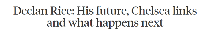 切尔西目前是对赖斯最感兴趣的球队,此外曼联和曼城也对他有意,西汉姆联对赖斯的估价在1.5亿英镑。