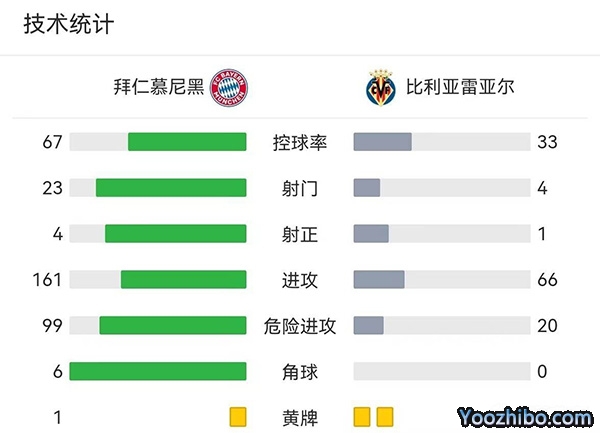 全场比赛结束,拜仁慕尼黑1-1比利亚雷亚尔,总比分拜仁1-2被黄潜淘汰。