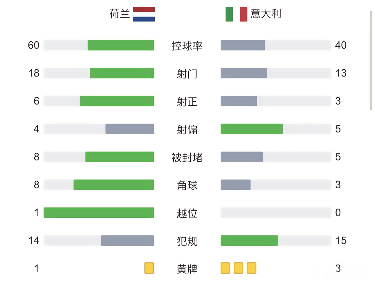 全场比赛结束,最终意大利3-2荷兰。