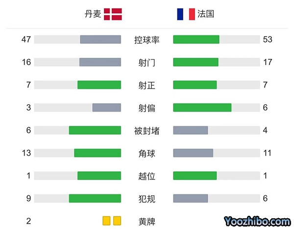 全场结束,最终法国0-2丹麦。