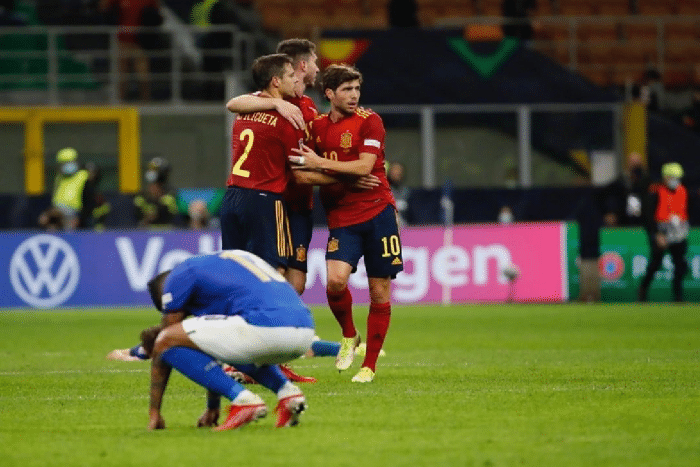 178直播10月07日讯西班牙国家队在欧国联半决赛的比赛中,2比1战胜了意大利国家队,晋级第二届欧国联决赛,而他们在决赛的对手会是法国国家队和比利时国家队的胜者。这种情况下,许多人都开始猜测,谁能拿下本届欧国联的冠军呢?而不少西班牙媒体都看好自己的国家队,甚至有人认为,西班牙队已经提前锁定了本届欧国联冠军了,因为他们的主帅恩里克在决赛赛场上的战绩绝对彪悍,8次进入决赛7次夺冠,这样的战绩,给了西班牙媒体极大的信心。