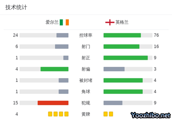 最终英格兰2-0爱尔兰取得开门红。