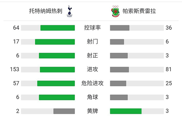 178直播讯:北京时间8月27日02:45,欧协联附加赛次回合,热刺主场迎战帕索斯费雷拉(首回合热刺0-1落败)。上半场凯恩梅开二度,希尔献助攻外加中柱;下半场洛塞尔索任意球造成安图内斯乌龙。最终,热刺3-0帕索斯费雷拉,总比分3-1晋级正赛。