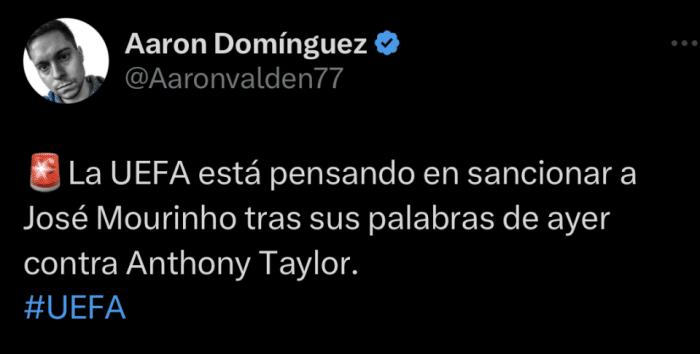 178直播讯06月02日凌晨,来自西班牙记者Aaron Dominguez透露,针对穆里尼奥赛后就安东尼-泰勒发表的言论,欧足联正考虑对穆帅进行处罚。处罚内容包括一定场次的禁赛和相当数量的罚款。
