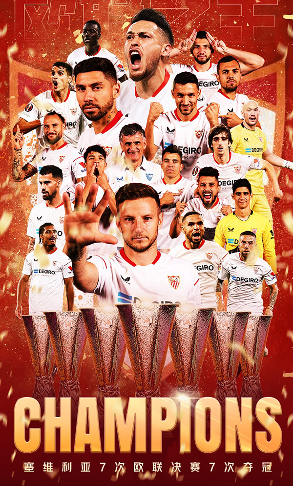 此前塞维利亚已经6次夺得欧洲联盟杯/欧联杯冠军,分别是2006年,2007年,2014-16三连冠和2020年!这是他们第7次捧杯!