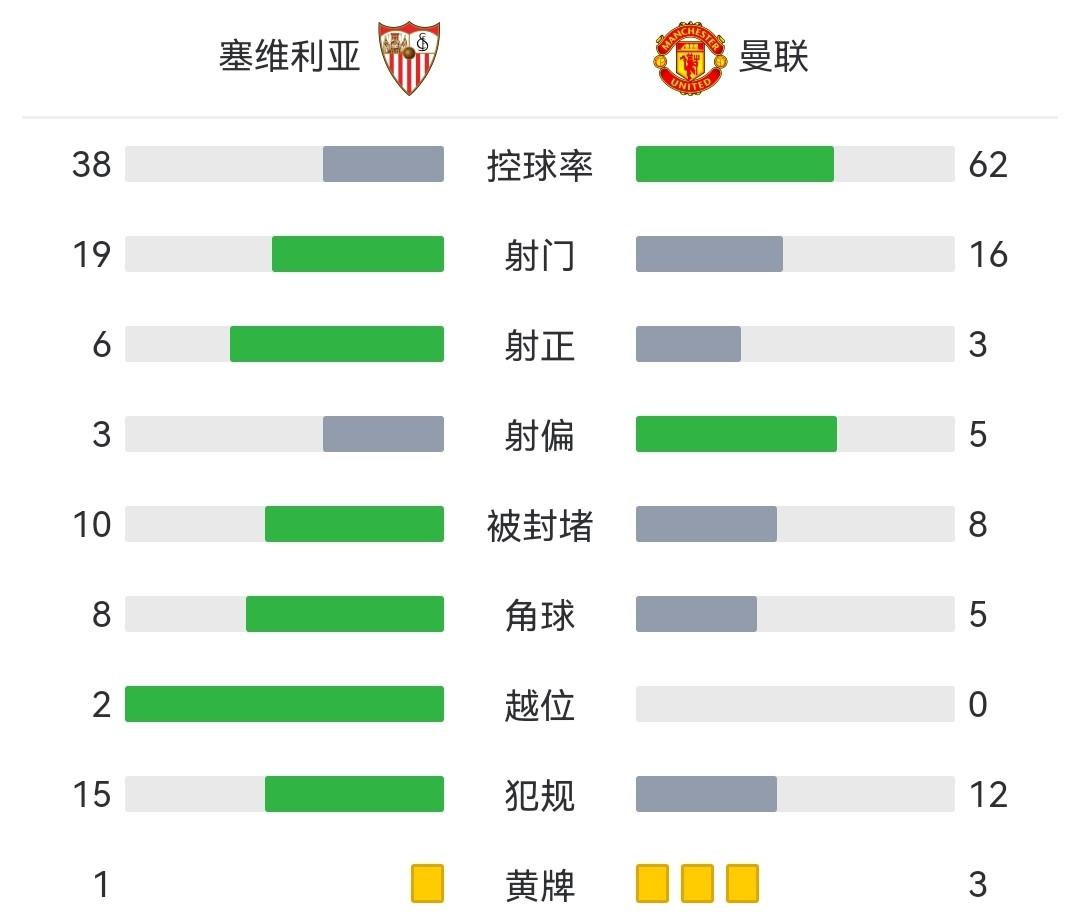 最终曼联客场0-3塞维利亚总比分2-5止步八强。