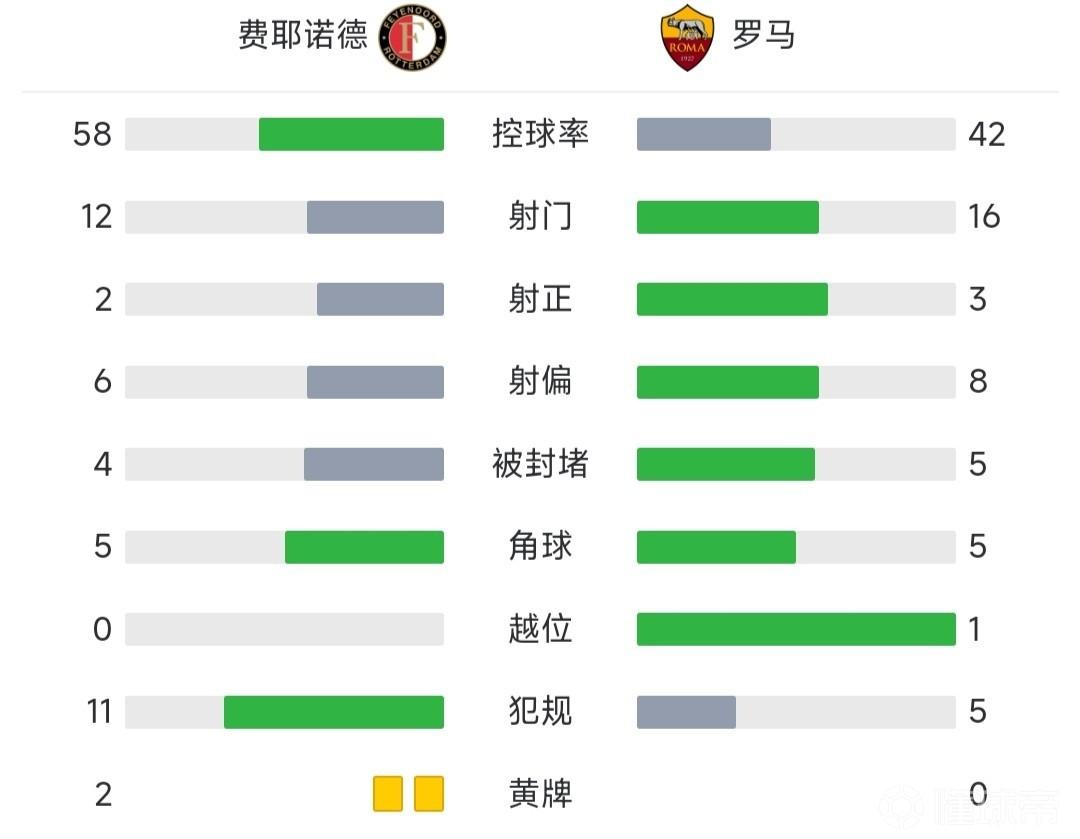 全场比赛结束,罗马0-1费耶诺德。