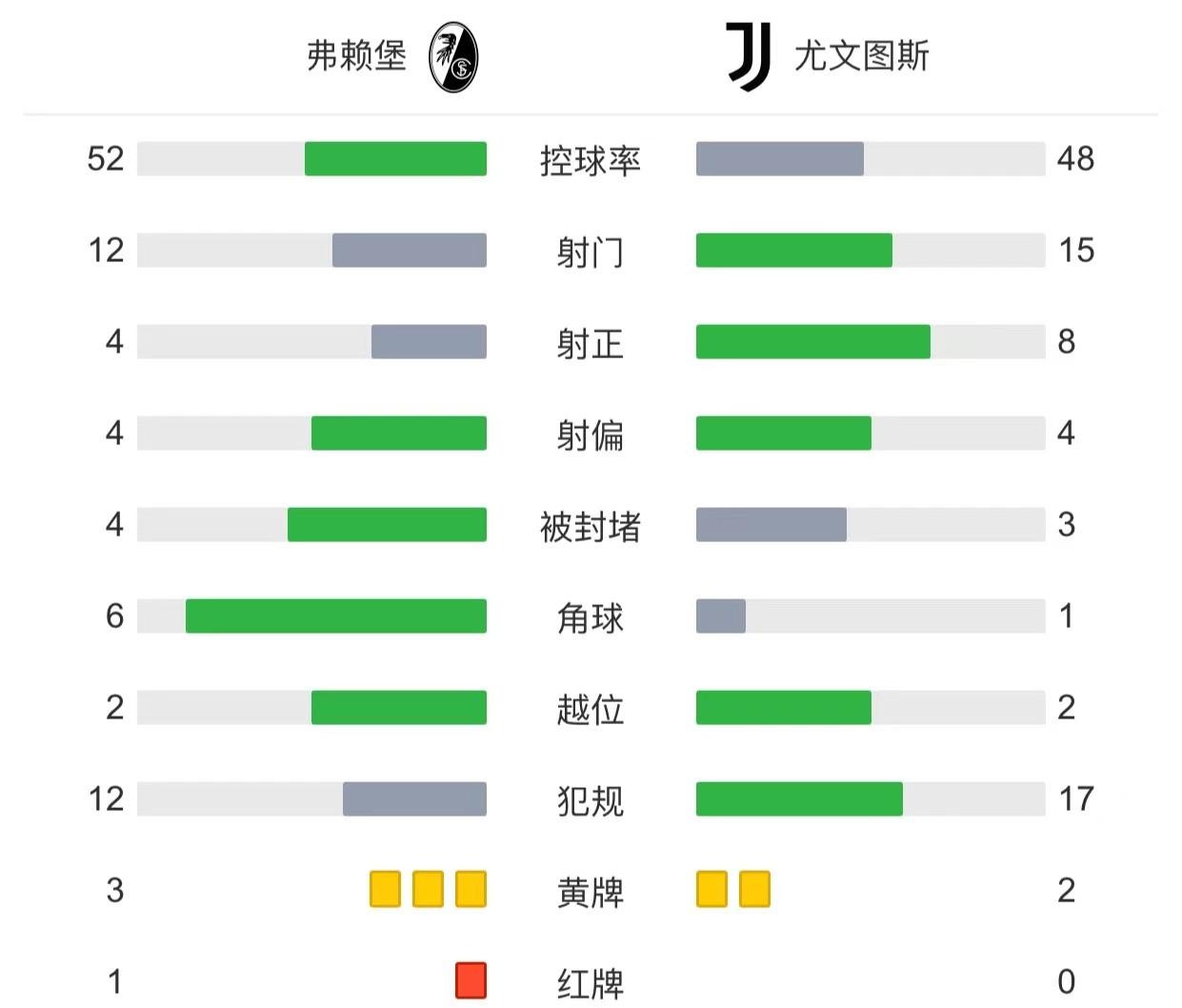 全场比赛结束,尤文图斯2-0弗赖堡,总比分3-0晋级8强!