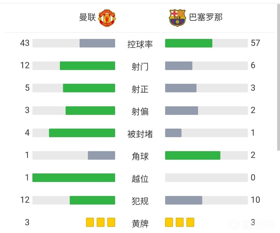 最终全场比赛结束,曼联2-1淘汰巴萨。