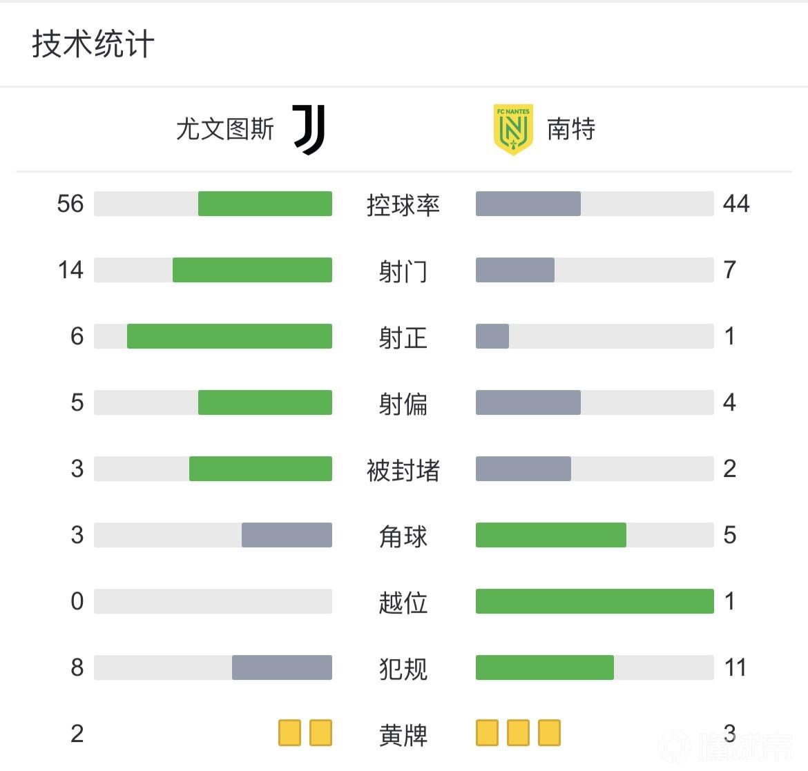 全场比赛结束,最终首回合尤文1-1南特