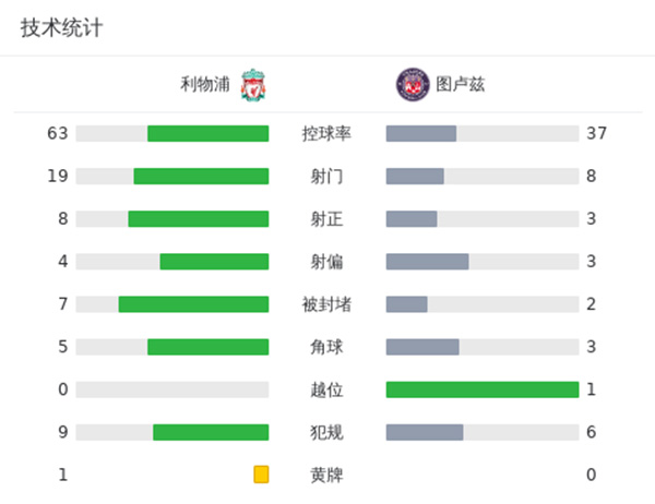 关键事件: 第9分钟,若塔中圈附近得球,随后向前一路推进到禁区一脚低射,雷斯特斯没能阻止此球入网,利物浦1-0图卢兹。