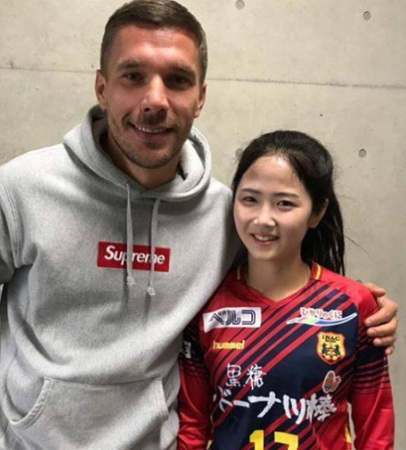 李玟娥在俱乐部和国家队都有不俗的表现, 当然她最令人关注的是颜值和身材,与德国巨星波多尔斯基合影,可以看到李玟娥的脸非常小。比赛中的李玟娥也会化妆,很多韩国队球员甚至男足的球员都会这么做。李玟娥长相清秀甜美,身材凹凸有致,一度被称为是韩国女足第一美女。