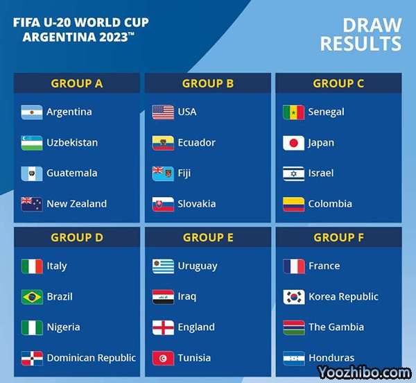 178直播讯 北京时间4月22日,2023U20世界杯小组赛分组出炉,东道主阿根廷与乌兹别克斯坦同组,意大利与巴西同组,法国与韩国同组。 阿根廷原本无缘本届世青赛,但由于原主办国印尼被取消资格,阿根廷获得主办权,他们以东道主身份参加本届赛事。本届U20世界杯将在5月20日-6月11日举行。