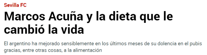 自从去年7月,阿库尼亚一直受到左侧耻骨的伤势,只有他受到国家队队友佩塞利亚和吉多-罗德里格斯的建议,找到专门给顶级运动员设计营养餐单的诊所,他听从医生的建议,放弃了马黛茶、烤肉,只吃蔬菜和鱼,之后他的疼痛感逐渐消失。
