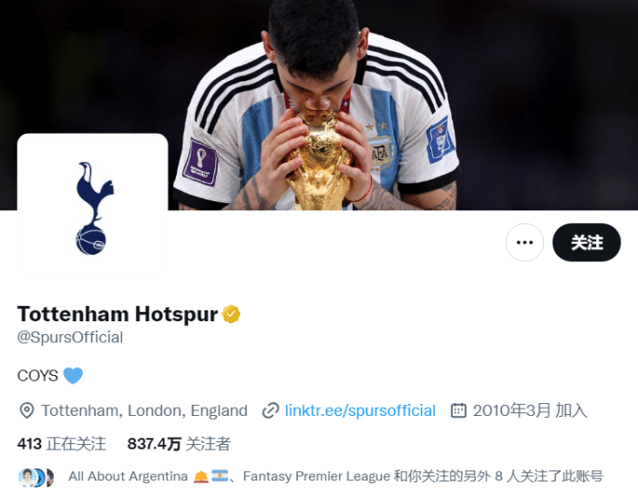 178直播01月02日讯 ,热刺官方更换社交媒体封面,封面内容为罗梅罗亲吻大力神杯。
