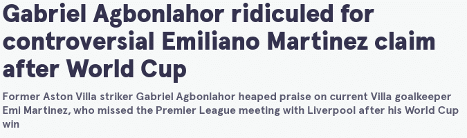 阿邦拉霍说:“我认为他是世界上最好的门将,每个看了决赛的人都会这么认为。马丁内斯随阿根廷夺得了世界杯的冠军,他在比赛中做出了很多关键扑救。”