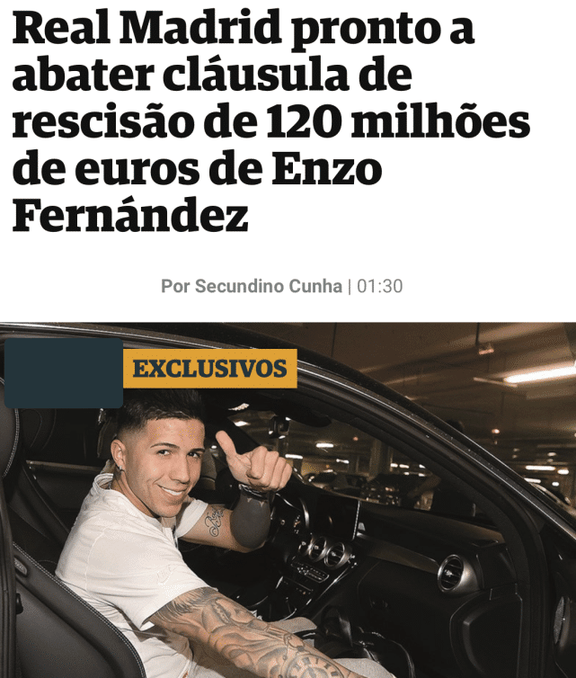 目前,本菲卡主席鲁伊-科斯塔打算留住这名年轻球员直到赛季结束,即使有些俱乐部倾向于在一月份支付违约金,他也不想改变想法。21岁的恩佐在德国《转会市场》上,身价已经上涨到5500万欧元,但可以预见的是,任何欧洲豪门要想签下他,都必须要支付远高于他身价的转会费。