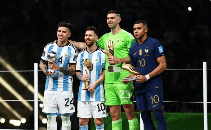178直播12月24日讯 阿根廷夺取2022年卡塔尔世界杯冠军,梅西和他的队友们终于圆梦,这是继马拉多纳之后,阿根廷的又一个巅峰。这一次站在世界之巅,阿根廷三大球星格外耀眼,首先是梅西加冕球王,并且拿到了本届世界杯的金球奖,然后是门将达米安-马丁内斯,他是本届世界杯最佳守门员;再者就是21岁的天才中场恩佐-费尔南德斯,他夺取了赛事最佳新秀奖。