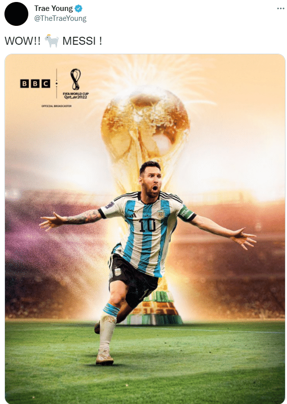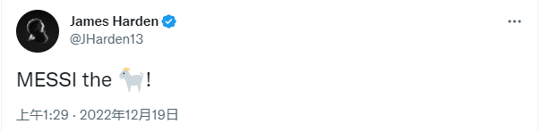 76人球星哈登和老鹰球星特雷-杨发推直言梅西是历史最佳;鹈鹕球员小南斯转发梅西亲吻冠军奖杯,同样直言:历史最佳;开拓者球员约什-哈特表示:本届世界杯巩固了梅西史上最伟大球员的地位。
