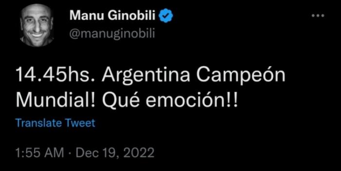 NBA名宿也祝贺梅西,独行侠名宿德克-诺维斯基发推写道:多么精彩的一场比赛啊!真的为梅西感到开心;马刺名宿、阿根廷球星吉诺比利发推写道:下午2:45,阿根廷世界冠军!多么激动!
