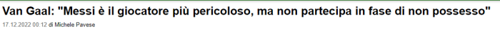 178直播12月17日讯 荷兰主帅范加尔日前接受了媒体采访,并谈到了梅西。