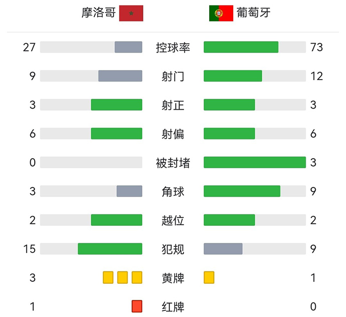 全场比赛结束,最终摩洛哥1-0击败葡萄牙。