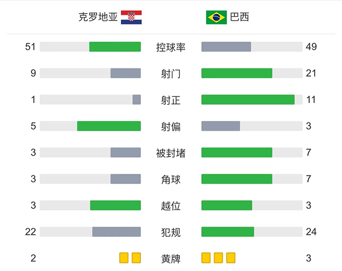 178直播讯:北京时间12月9日23:00,2022卡塔尔世界杯1/4决赛在教育城球场进行,克罗地亚对阵巴西,本场比赛主裁判是英格兰的迈克尔-奥利弗。上半场,维尼修斯远射被门将没收,内马尔兜射被门将没收,佩里西奇远射打偏。下半场,利瓦科维奇多次救险,内马尔小角度打门被挡出,90分钟战罢,克罗地亚0-0巴西。加时赛内马尔破门,这是内马尔为巴西国家队打进的第77球,追平了贝利成为巴西国家队射手王。佩特科维奇扳平比分,双方进入点球决战,罗德里戈和马尔基尼奥斯罚丢点球,最终,克罗地亚点球大战4-2淘汰巴西晋级4强。