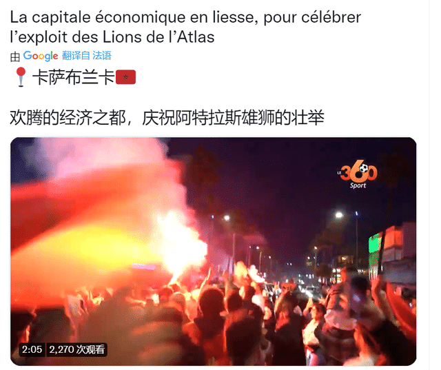 摩洛哥最为球迷所熟知的城市——卡萨布拉卡,如今已经改名为达尔贝达,也沉浸在胜利的狂喜之中。在卡萨布兰卡体育场,球迷们燃放起极为绚烂的烟花,整个体育场被浓雾笼罩,而球迷们的歌唱声则响彻云霄。对于这个国家乃至整个非洲来说,这场胜利都意义重大。