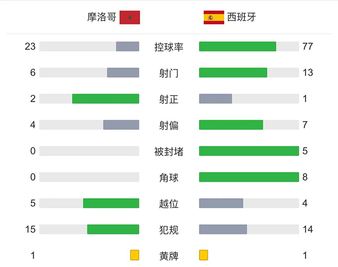 178直播讯:北京时间12月6日23:00,2022卡塔尔世界杯1/8决赛在教育城球场进行,摩洛哥对阵西班牙,本场比赛主裁判是阿根廷的费尔南多-拉帕里尼。上半场,阿什拉夫任意球攻门打高,阿森西奥小角度打门踢偏,马兹拉维远射被乌奈-西蒙化解。下半场,奥尔莫大力抽射被扑出,莫拉塔头球攻门顶高,90分钟战罢,摩洛哥0-0西班牙,双方进入加时赛。加时赛,阿莱士-巴尔德抽射被挡出,萨拉维亚小角度推射中柱,双方加时赛未能改写比分进入点球大战,点球大战,西班牙连丢三粒点球,0-3遭摩洛哥淘汰,摩洛哥八强将对阵葡萄牙和瑞士的胜者。