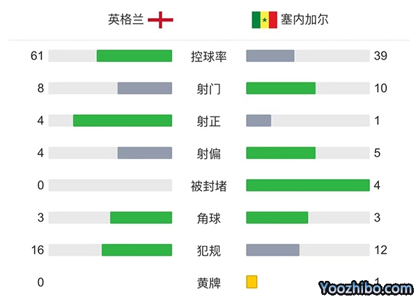 全场比赛结束,最终英格兰3-0击败塞内加尔,晋级八强,将对阵法国。