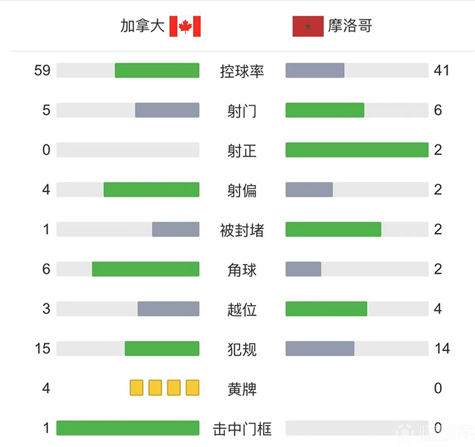 下半场伤停补时4分钟,全场比赛结束,最终摩洛哥2-1加拿大,晋级十六强。