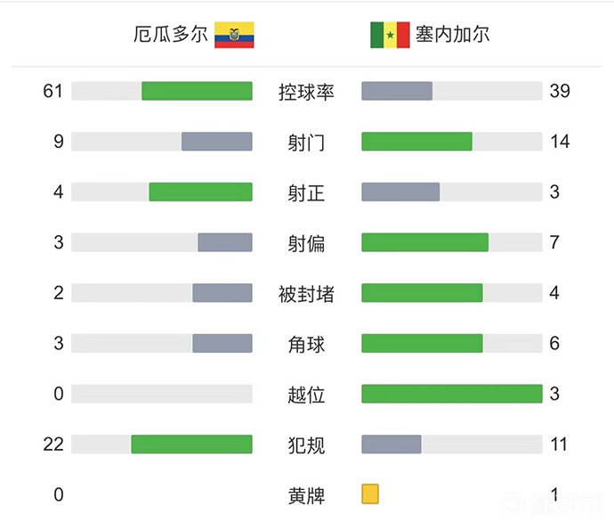 全场比赛结束,厄瓜多尔1-2塞内加尔!