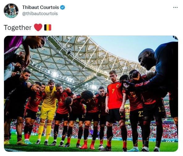 178直播11月28日比利时门将库尔图瓦在自己的社媒上,发文”团结一致“并配图球队合影。
