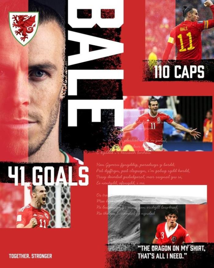本场比赛前贝尔共代表威尔士国家队出战109次,打进41球。