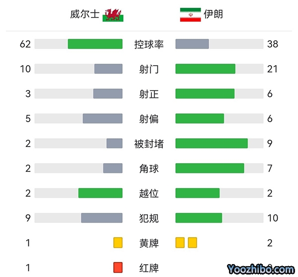 全场比赛结束,最终威尔士0-2伊朗!