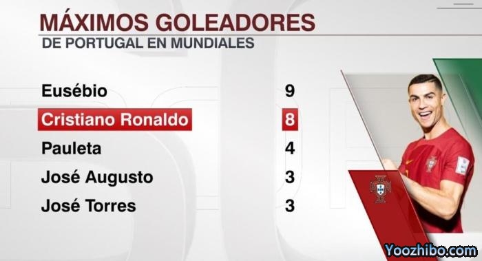 178直播11月25日根据数据统计,C罗在世界杯中的进球数已达到8个,在葡萄牙队内仅次于尤西比奥。