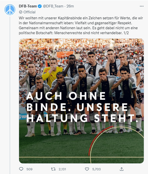 随后德国队官方发表申明解释捂嘴抗议的原因。