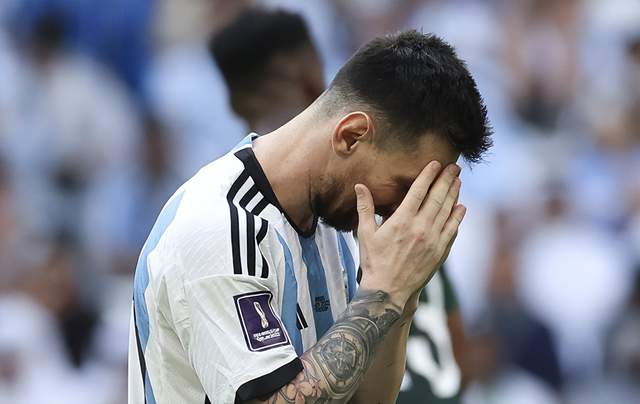 上半场比赛,阿根廷凭借梅西的点球,一度卸下身上的压力,球队之后也3次破门,但可惜全部越位在先。结果下半场,阿根廷为错失的数次机会付出了代价。下半场5分钟内,沙特由谢赫里和多萨里两度完成破门!此时,阿根廷人开始惊慌失措,梅西挠头落寞的背影,恐怕将载入世界杯史册。