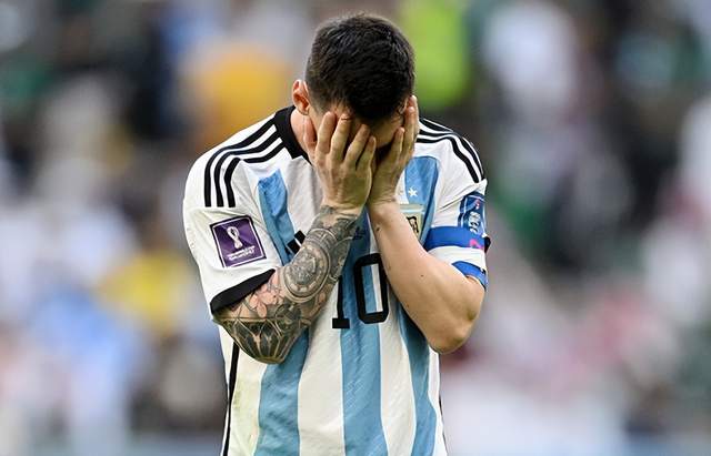 接下来的比赛中,阿根廷人几乎没有机会,除了塔利亚菲科近距离的一次撞射稍具威胁之外,没有创造像样的破门良机。最终,阿根廷1-2爆冷输球。这场输球,也让阿根廷历史上最惨痛的失利之一,成为1974年来阿根廷首次在世界杯首战至少丢2球的比赛。在比赛中,梅西也多次抱头绝望。