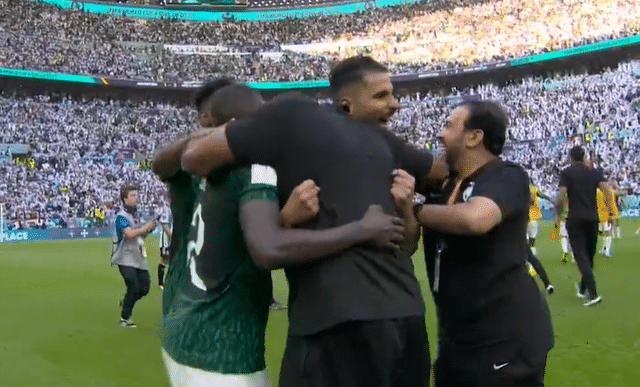 裁判吹响终场哨声的时刻,沙特全体球员疯狂庆祝,而阿根廷球员则显得非常沮丧。阿根廷36场比赛不败的纪录就此作古!而沙特,则迎来了他们国家历史上最重要的一场胜利,没有之一。他们用奇迹般的大逆转,击败了两届世界杯冠军阿根廷,这份荣耀将被永久铭记。