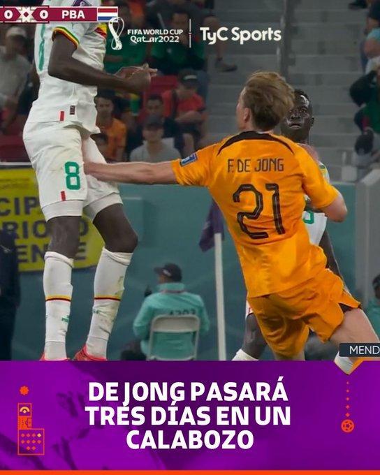 在比赛期间,库亚特起跳时被德容一手抓住隐私部位,后者直接戴上痛苦面具随后倒地,接着就被担架抬下场。