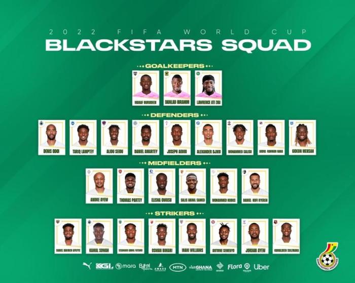 178直播11月15日消息,加纳今日公布了出征卡塔尔世界杯的最终大名单。阿森纳铁腰托马斯领衔,阿尤兄弟、兰普泰入选。