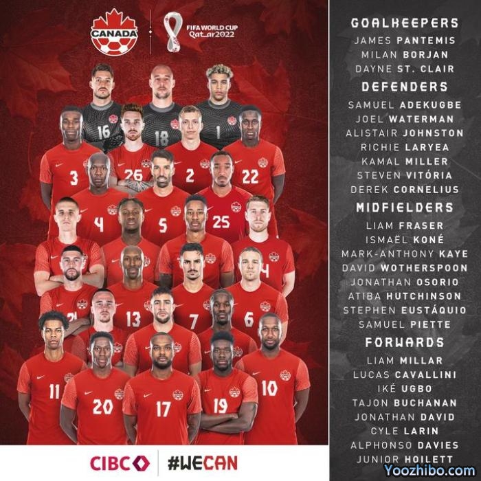 加拿大世界杯名单如下: