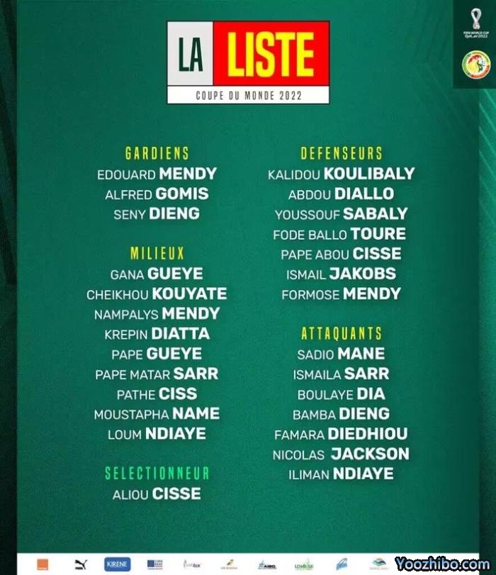 塞内加尔26人世界杯大名单: